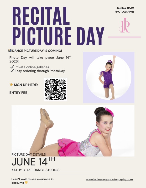 Individual Recital Photos will be taken at Kathy Blake Dance Studios.